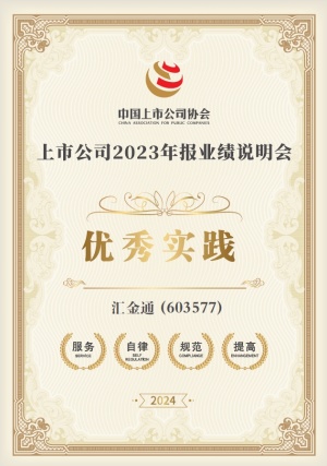2024年,匯金通以規(guī)范運(yùn)作為主線,優(yōu)化公司治理結(jié)構(gòu),提升信息披露的有效性,強(qiáng)化投資者關(guān)系管理,踐行“以投資者為本”的理念,創(chuàng)新業(yè)績(jī)說(shuō)明會(huì)召開方式,構(gòu)建多元化交流渠道,積極提升與投資者的溝通交流質(zhì)效。公司憑借在規(guī)范運(yùn)作、信息披露、投資者關(guān)系管理等方面的優(yōu)異表現(xiàn),榮膺資本市場(chǎng)多項(xiàng)榮譽(yù)。