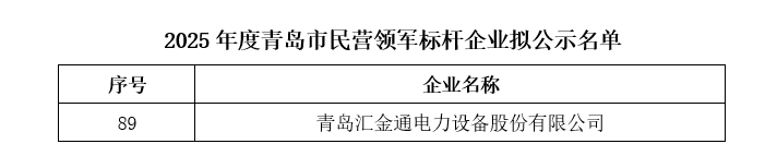 近日,青島市民營經濟發展局公示了《2025年度青島市民營領軍標桿企業公示》,匯金通蟬聯“青島市民營領軍標桿企業”榮譽稱號。